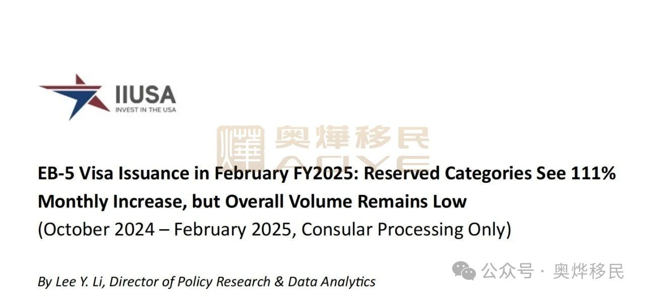 剛剛,IIUSA公布2025財年首季(2024年10月–2025年2月)簽證報告:EB-5投資移民領跑,職業移民也迎來利好。