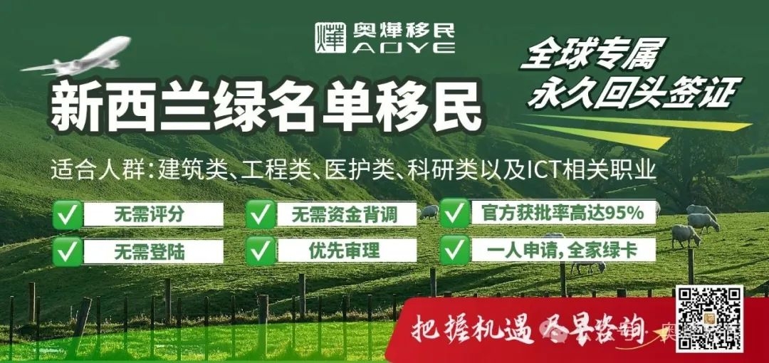 2025快速解鎖新西蘭綠卡,歡迎聯系奧燁移民,免費評估申請條件!