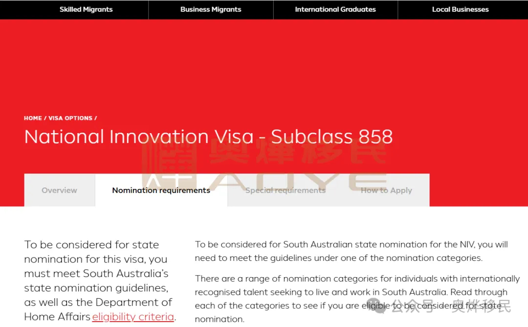 2.定向類別匹配:需至少符合南澳州設定的五大優先提名類別中的一項具體要求(詳見下文分類說明)。