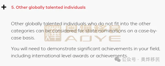 其他不符合上述類別的全球人才可以通過個案評估方式申請州提名。