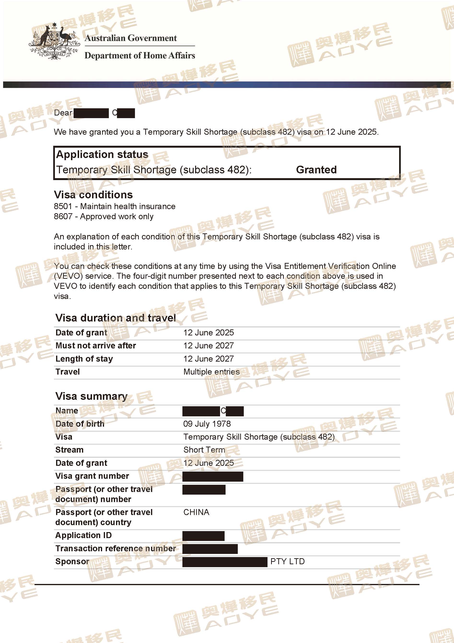 5. 簽證獲批:2025年6月12日