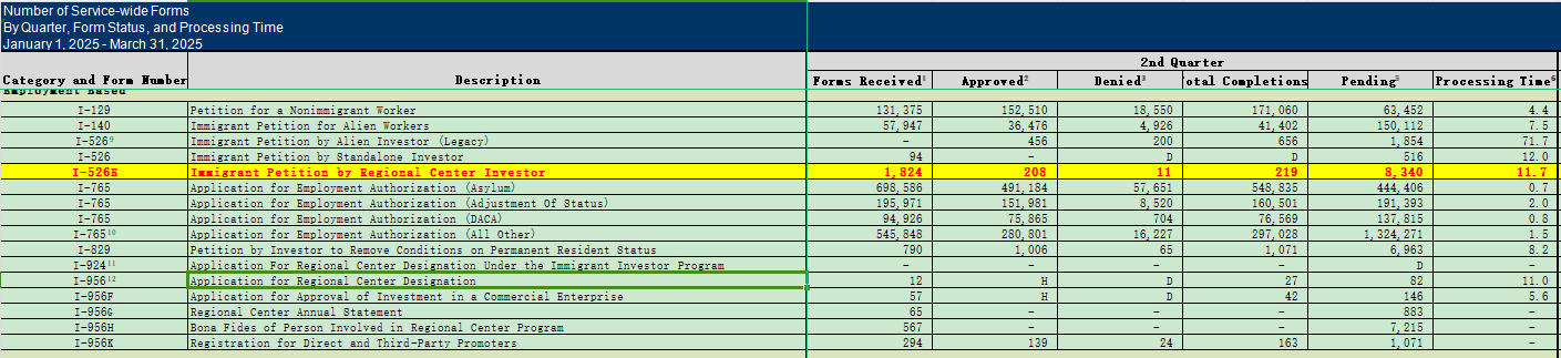 【奧燁移民】美國移民局發布2025財年Q2職業移民數據:EB-5新政申請量創歷史新高!
