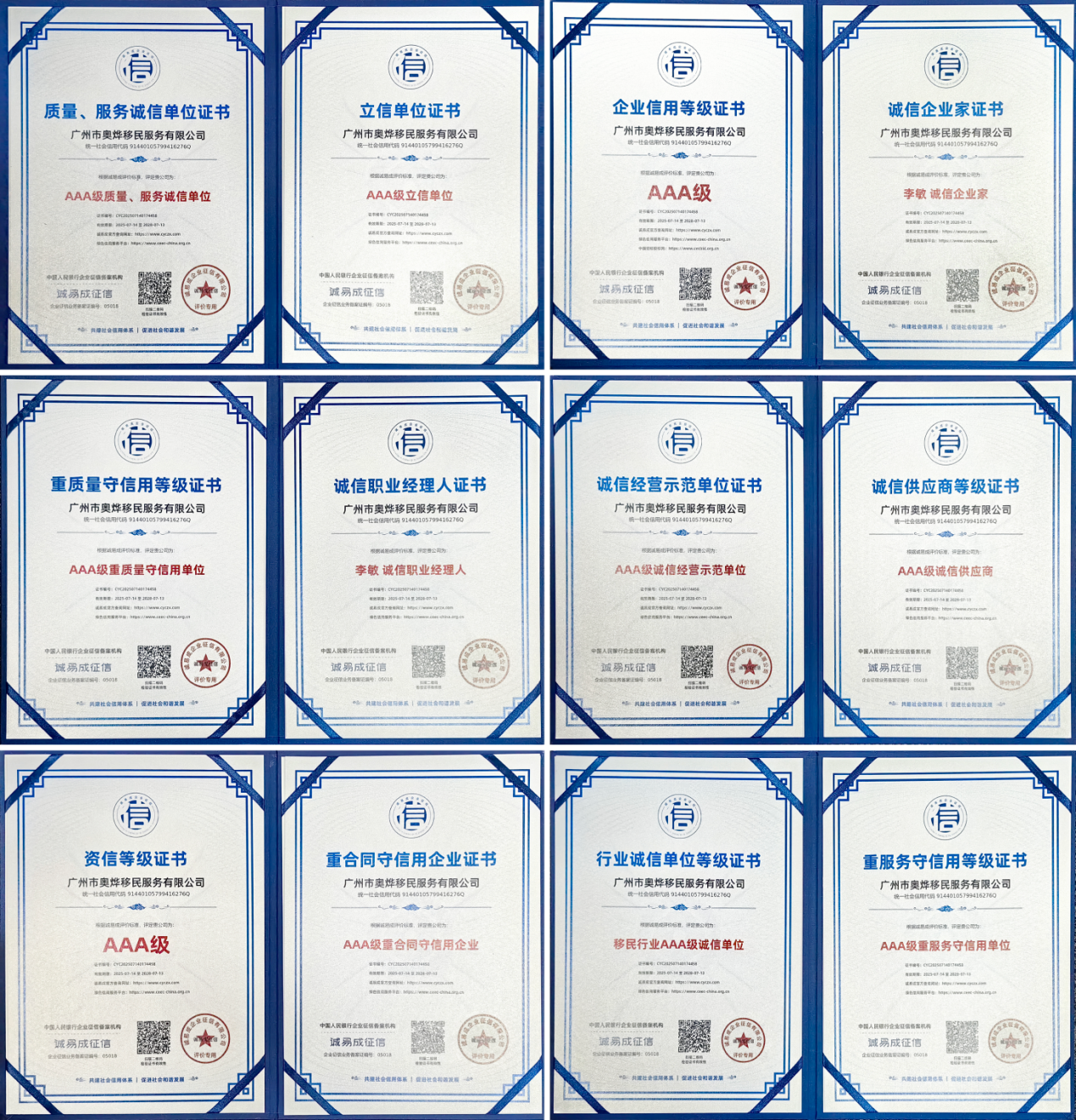 此次獲得AAA級認證及全套信用資質,不僅是業界對奧燁移民多年堅持誠信經營理念的充分肯定,更是其品牌影響力、社會信任度和綜合服務能力的權威背書。這些信用成果現已通過包括誠易成征信官網、綠色信用服務平臺、中國招標投標網及天眼查在內的多個平臺公開可查。