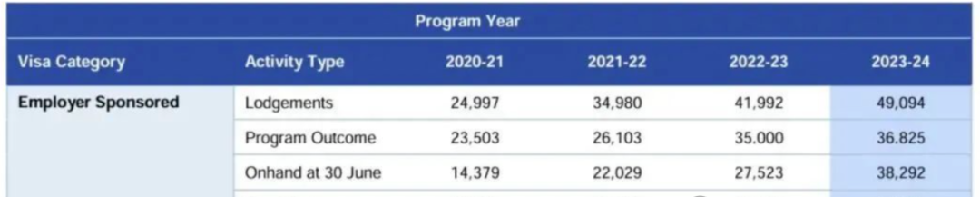 兩者合計66,000個名額,繼續穩居高位。隨著總配額落定,各州的州擔保配額和政策預計將在近期更新到官網關于簽證下簽與配額的關系如果申請人已遞交簽證申請但尚未獲批,一旦在新財年獲批,該下簽將占用2025–26財年的配額。結合已公布的25–26財年總配額(18.5萬)保持不變的情況來看,雇主擔保類別的政策優勢預計仍將延續。對申請人而言,這意味著:1.獨立技術移民(189類別)競爭激烈,基本只適合分數較高、職業在緊缺列表中的申請人;2.已評估申請條件的雇主擔保簽證意向申請人,應盡快啟動擔保流程,把握當前機會。往年186雇主擔保移民的配額1.2024-25財年186簽證配額:44000個;2.2023-24財年186簽證配額:36825個;3.2022-23財年186簽證配額:35000個;4.2021-22財年186簽證配額:22000個。