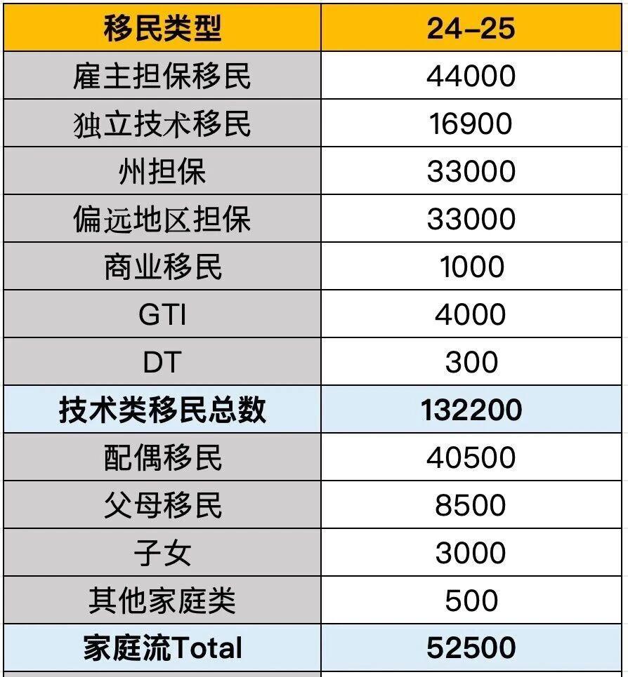 整體規模與2024–25財年保持一致,并將繼續以技術移民為主要導向。
