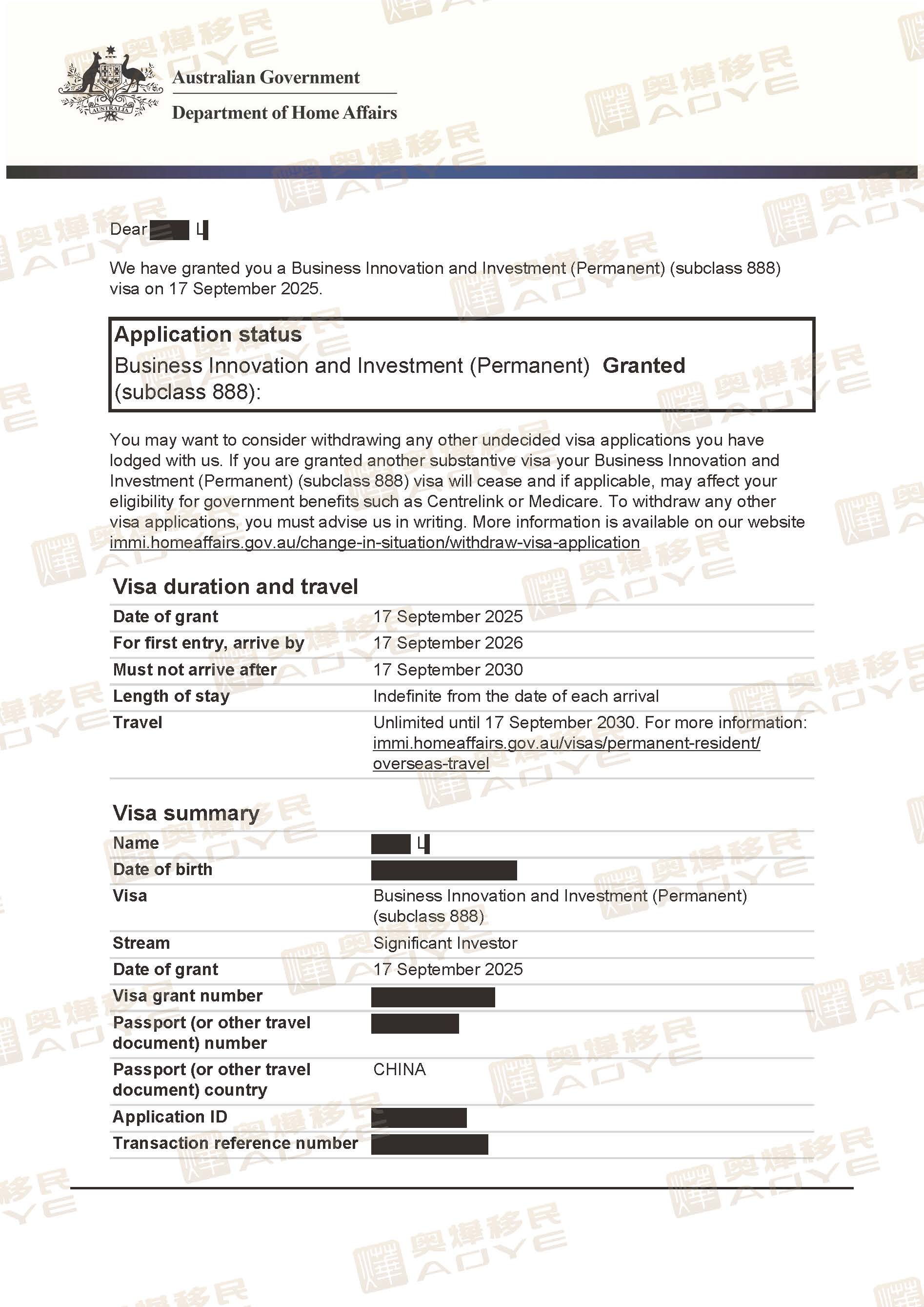 喜訊:L總888C簽證獲批!從188C啟動到888C獲批的這6年來,離不開L總對我們的信任與積極配合。我們也始終以細致、專業的服務陪伴其中,協助L總順利拿到888C永居的同時也獲得了L總及家人的認可與肯定。再次恭喜L總!