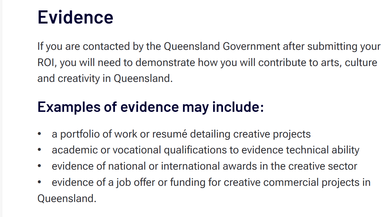 如果您在提交ROI后被昆士蘭州政府聯系,您需要說明將如何為昆州的藝術、文化和創意事業做出貢獻。