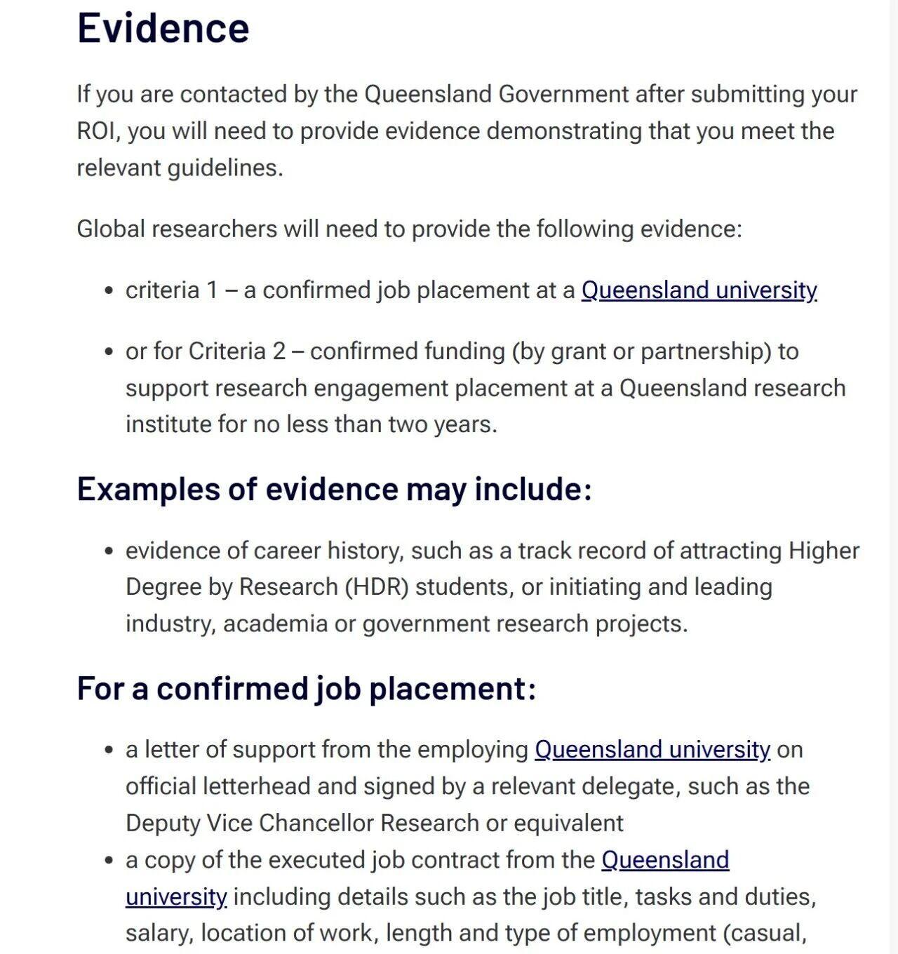 昆士蘭大學出具的支持信或已簽署的勞動合同。