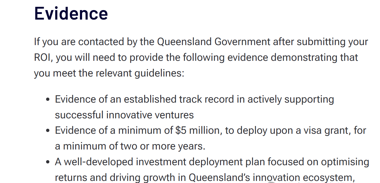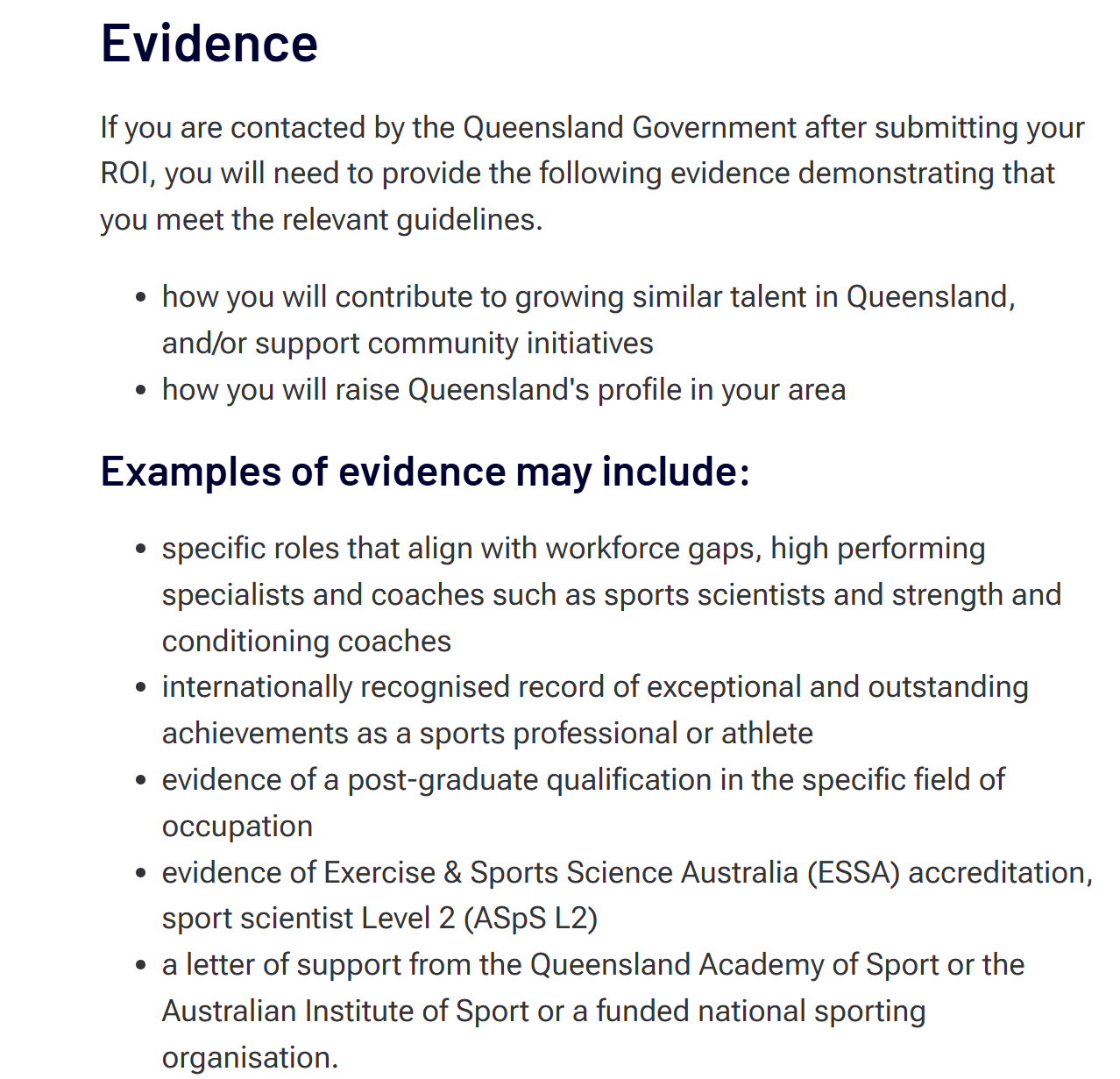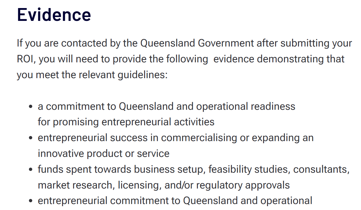 如果您在提交ROI后被昆士蘭州政府聯系,您需要提供以下證據以證明您符合相關指南。