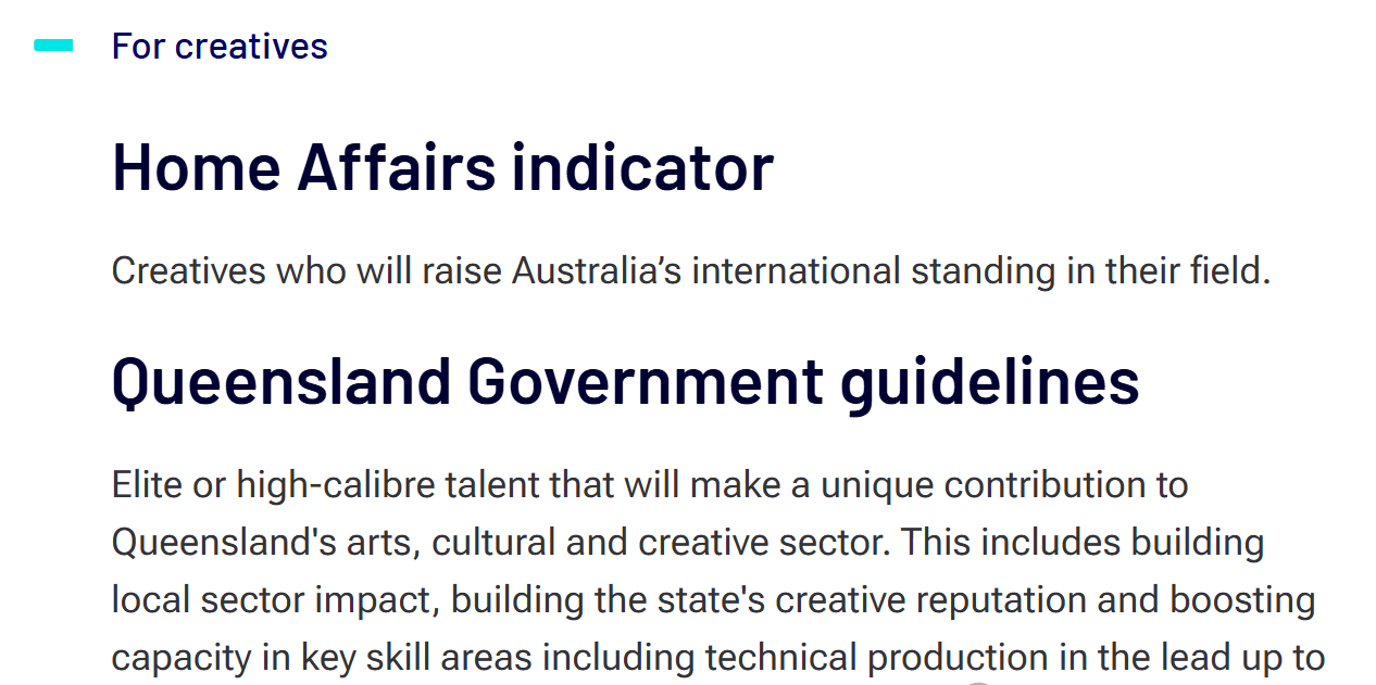 d.昆士蘭創意商業項目的工作邀請或資金證明。