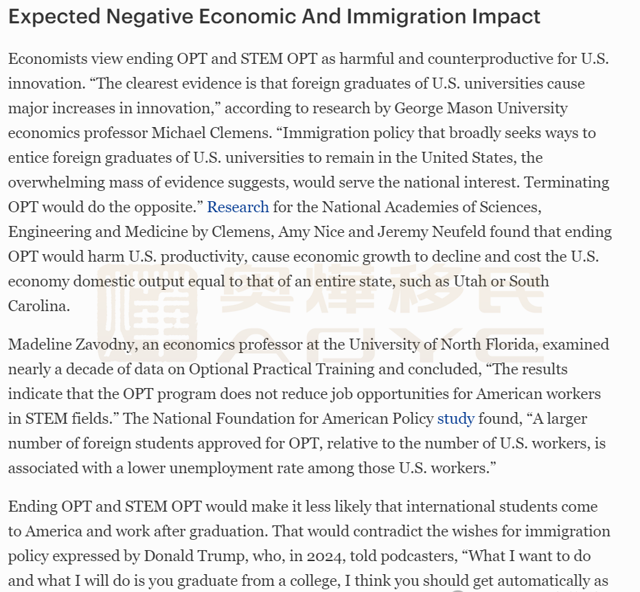 比如,雇主需繳納更多稅款、提供培訓計劃,OPT申請面臨更多審查、周期延長、費用增加等。