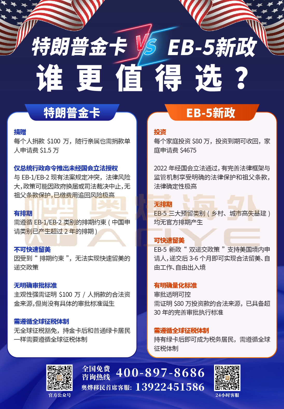 拿美國身份_特朗普金卡 vs EB-5新政:誰才是更穩妥的移民選擇?