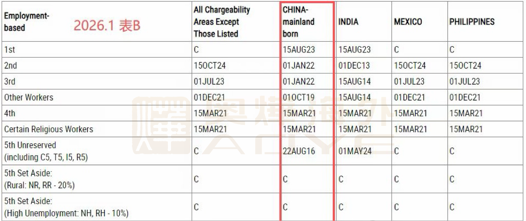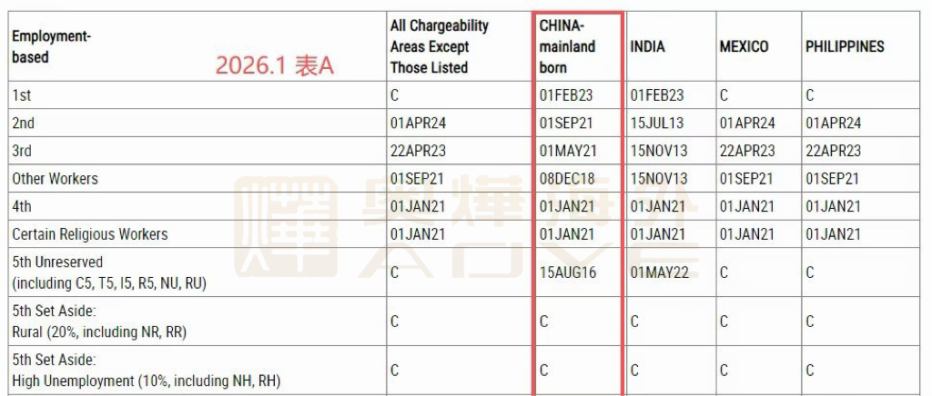 美國國務院最新公布的2026年1月移民排期顯示: