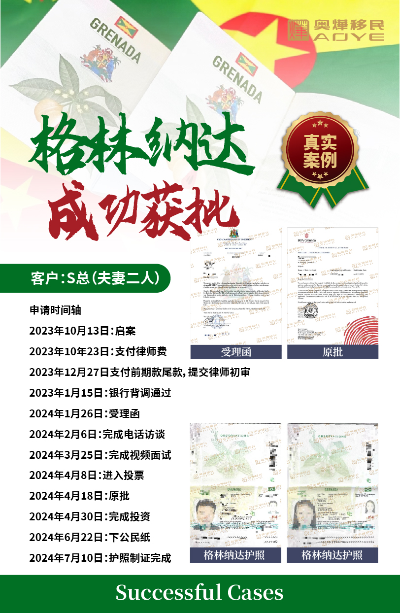 恭喜奧燁客戶成功獲批格林納達移民身份