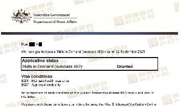Congratulation!恭喜奧燁澳洲SID 482客戶B總成功獲批