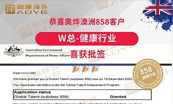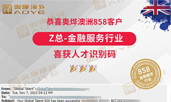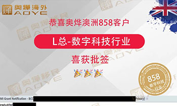 恭喜奧燁澳洲858客戶 能源行業K總 成功獲批 恭喜奧燁澳洲858客戶 高端制造行業F總 喜獲人才識別碼